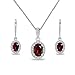 FEATURE - This stunning jewelry set includes dangling leverback earrings featuring 7x5mm oval synthetic ruby gemstones set in a halo setting with surrounding white topaz stones and a pendant necklace featuring an oval 8x6mm synthetic ruby gemstone with the bale showcasing white topaz gemstones for an added touch.