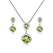 FEATURE - This stunning jewelry set includes dangling leverback earrings featuring 7x5mm oval peridot gemstones set in a halo setting with surrounding white topaz stones and a pendant necklace featuring an oval 8x6mm peridot gemstone with the bale showcasing white topaz gemstones for an added touch.