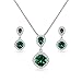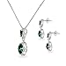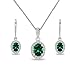 Emerald Earrings and Necklace Set - This stunning jewelry set includes dangling leverback earrings featuring 7x5mm oval simulated emerald gemstones set in a halo setting with surrounding white topaz stones and a pendant necklace featuring an oval 8x6mm simulated emerald gemstone with the bale showcasing white topaz gemstones for an added touch.