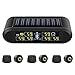 【SOLAR POWER & USB CHARGING】Our 4-wheel tire pressure monitoring system with 2 charging ways which ensure the tpms system will work continuously, the large area of solar panels above continue to supply energy in sunny days, saying goodbye to traditional wiring. USB charging cable (included) is available for all-weather use, realize full-time power supply and do not occupy the car cigarette lighter socket.
