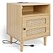 Spacious Storage Space: The hand-made rattan-decorated door of the end table provides enough space for frequently used items. The top and the open shelf are ideal to place clock, books, eyeglasses, and other nighttime essentials
