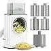 🧀Free Your Hands with Our Vegetable Slicer - The cheese grater with handle protects your hands from all sides during use: the handle replaces your hands in rotating and the food pusher keeps your hands away from the blades. In addition, inward-facing design of the blade is available for safe cleaning. Recommended 3 blades and transparent barrel for dishwasher safe.