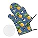 EAST TO CLEAN: The Fresh fruit printed oven mitt and pot pad set high quality material is easy to clean. You can also turn the gloves over from the inside, wash them by hand and let them dry and then simply put them back again. Not machine washable, do not bleach.