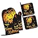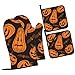 EAST TO CLEAN: The Halloween Pumpkin printed oven mitt and pot pad set high quality material is easy to clean. You can also turn the gloves over from the inside, wash them by hand and let them dry and then simply put them back again. Not machine washable, do not bleach.