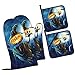 EAST TO CLEAN: The Halloween Moon Horrible Pumpkin printed oven mitt and pot pad set high quality material is easy to clean. You can also turn the gloves over from the inside, wash them by hand and let them dry and then simply put them back again. Not machine washable, do not bleach.