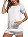 ♥Two-Piece Pajama Shorts Set: Top featuring V neck, short sleeves, pleated front neckline & Shorts featuring elastic waistband with adjustable drawstring and thigh length