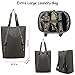 Large, gusseted front laundry/shoe pocket placed at bottom of bag (fits pair of shoes up to size 15)