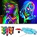 NEON BODY PAINT: Our neon body paint can shine eight different colors bright under UV black light or ultraviolet or intense neon, perfect for indoor or outdoor rave & festival makeup party at night. (If body paint light is not bright enough, please thicken the coating or change the UV light of other colors)