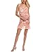 SMOCKED RUFFLE MINI DRESS: Asymmetrical detail; fit and flare.