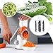 🥗Safe Rotary Cheese Grater: vegetable slicer blades are made from high quality stainless steel, other parts of the rotary graterare made from food grade BPA free plastic. No need electricity, inter blades and no contacting blades with hand.