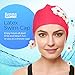 LARGE VARIETY: Available in multiple solid colors, there’s a bathing cap to suit everyone’s taste, swimsuit or personality. Each cap is furnished with pleats all around, allowing you to protect your hair and enjoy all your swimming activities in style.