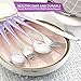 Gradient Design: New gradient purple design,under your careful maintenance is not easy to fall off,there are three colors for your choice,and ergonomic design of curved handle make the weight balance of tableware,handle the tail design fashionable avant-courier,grip comfort,let you both visually and dining experience can be enjoyable.