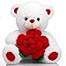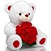 With a red rose in hands, the cute teddy bear with red foot pads and ears is a wonderful present to express your love to the beloved ones