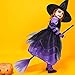 Quality Material: the witch hat, witch dress and over knee high sock are made of the polyester, comfortable and breath, witch broom is made of black broomstick and gauze, the length can be adjusted flexibly, detachable handle allows you to store and carry easily without taking up too much space and is hard to break; This cute witch costume for girls will add Halloween party more joy and happy atmosphere