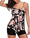 Two Piece Tankini Swimsuits feature a triple tiered ruffle swim tank top and black boyshort swim bottoms, which have a great slimming effect. The 3-layer handkerchief flounce ruffle makes this floral print tankini top quite flowy and highlights your curves.