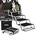 ✅【Lightweight and Heavy Duty】: Our foldable aluminum framed dog stair weighs only 14lbs, but stable enough to support up to 160 lbs large dog. Although each step is incredibly durable and withstand heavy-duty use, the structure is stable and not easy to shake when your dog is climbing, which is strong,stable and sturdy enough for your small to large dog’s everyday use .