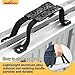 High-traction punch plate surface for non-slip grip for safe in all weather conditions; rubber-coated finger-style attachment points to prevent scratches to your truck or trailer; 2 safety straps included