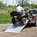 【Versatile Use】Depending on your needs, use one or two ramps. It is simple to set up. A single ramp can support 550 lb (250kg), making it ideal for motorcycles and bicycles. Can support up to 1100 lbs (500kg) when utilizing two ramps simultaneously; this makes it perfect for ATVs and UTVs, lawnmowers, trucks, motorcycles, trailers, dirt bikes, and garden tractors, among other things. Not appropriate for pets.