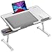 Large Size & Tablet Groove & Storage Drawer: Besign LT06 Laptop table is 23.62”x12.99”x0.35” (600x330x9mm) of size which fits for 17” or larger laptop with space for a mouse. Built-in stand groove for supporting tablets and smart phones, and a storage drawer for pens and glasses.