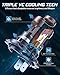 【VC Cooling Tech & Long Lifespan】Bevinsee H7 LED headlight bulbs feature a 2nd-Gen VC cooling system with liquid-cooling copper tubes, copper substrates, 72 copper heat sinks, 15000RPM fan, and double aluminum clamps, ensuring faster and more efficient heat dissipation. This extends the lifespan of the h7 led bulb up to 100000 hours, reducing the need for frequent bulb replacements and saving you money.