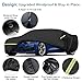 【Professional Design】- 1 Driver door zipper for easy access. 2 Windproof straps at front & rear to fix your auto cover in heavy wind. 3 6pcs reflective strips, Remind other people at night. 4 Mirror pockets make the cover fit your vehicle better.