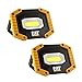 RUGGED WORK LIGHTS: This 2-pack of water & drop resistant work lights are rugged & durable, eachfeaturing 2 brightness settings (500 lumens high & 250 low), a 180-degree ratcheting stand/handle & a magnetic back.