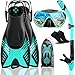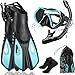 【Flexible and Adjustable Fins】Scull paddle snorkeling fins design provides excellent power and energy-saving efficiency for maximum propulsion, with open heel design and adjustable straps, suitable for different foot shapes and sizes.