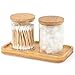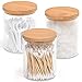 Qtip Holder Glass:The 2 pieces qtip dispenser holder is made of clear glass,sturdy and good weight, not cheap plastic. With bamboo lid, fits perfectly on top of the q-tip jars, easy to remove with one hand