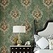 Vintage green textured damasks floral wallpaper pattern, textured non-woven fabric