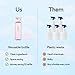 SAVE MONEY, SPACE AND THE PLANET. Buy the bottle once, refill forever. No more throwing away plastic bottles or shipping water. Easy to store, easy to use. Refills packed in compostable paper-based packaging.