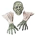 The fabric body and durable plastic head/hand can be used indoors or outdoors. Door or wall curtain pillar decorations-scary green ghosts, bringing you a spooky atmosphere.