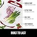 Stays in Place During Prep: make food prep easier than ever with the most durable cutting board; its slip resistant handle and rubber border help to reduce slipping and sliding on countertop surfaces