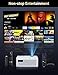 [Wireless Dual Band Movie Projector] This outdoor projector has 5/2.4G dual-band WiFi for smooth and quick smartphone syncing, allowing for high-quality and speedy gaming and video streaming. Create a cinematic ambiance by hanging the HD projector in your living room or bedroom.