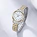 【Simple Lightweight Design】Ladies watches use fashion casual stainless steel two-tone gold silver expansion band, White dial with minute mark, full Arabic numerals, and easy-to-read time, Design exquisite and classic, Quartz analog display.