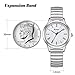 【Fashion Stretch Band Watches for Women】Business Silver Stainless Steel Elastic Band Ladies Watch with Japanese Quartz Movement, High Hardness Coated Glass Mirror Anti-scratch, Shockproof, and wear-resistant. Stable Running Time. Very Stylish and Elegant.