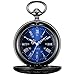 【Classic Vintage Pocket Watch】Our Pocket Watches for Men with Chains Use Unique Blue Dial Design and Roman Numerals Scale, Very Special, Engraved on the front and back with a beautiful pattern, vintage appearance desig. Great as a fashion accessory. (For safety, the front face is made of Acrylic instead of Glass).