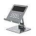 ADJUSTABLE & MULTIFUNCTION - Adjustable height tablet stand height from 11.4" to 18.1", Vertical 360° rotatable, Horizontal 76° angle adjustable, ipad stand holder provide you a most comfortable viewing angles and ergonomic eye-level height. iPad desk stand perfect for watching videos, viewing photos, reading, typing, video recording, playing game.