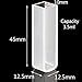 Standard spectrometer cuvette comes in a pack of four with the outer dimension: 45 mm x 12.5 mm x 12.5 mm.