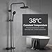 [Function]:3 functions,overhead rainfall shower handheld sprayer and tub spout.The thermostatic core maintain the temperature at 38°C,avoiding water temperature getting too cold or too hot suddenly,eliminating scalding.