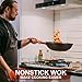 【Pre-seasoned & Healthy Cooking】 The carbon steel pan is pre-seasoned at high temperatures 800F using state-of-the-art nitriding technology before they leave the factory, for non-stick, non- rust, scratch resistant, fast and even heatingand, easy to clean properties. Our nonstick wok not only helps you cook delicious foods with less oil, but also no chemical coating, so you don't worry about the coating falling off and producing harmful substances, making your cooking healthier and more secure.