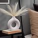 【MODERN DESIGN 】Beautiful aesthetic Italian hollow design white ceramic vases for home décor which (INCLUDES 12 PIECE of Faux Expensive Pampas Grass). The donut design makes the flower vases unique and stylish; you can see through the hollow out while enjoying beautiful flowers in the vase, which adds more romance and fashion to your house.