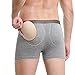 Style: male package padded underwear and men?s butt padded underwear, two butt pads and one package pad, high quality elastic wide logo waistband with letters embroidery, no front open, long leg design will not be loose and stay tightly on your legs.