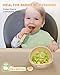 Best First Bowl For Child: The extended curved design helps children scoop up any food with confidence and ease, without getting it all over the table. Deepened design up to 12oz (360ml) can hold more foods, even soup. Come with a bamboo spoon that has a soft silicone tip, its design in non-slip grip, easy for baby to hold, and protect delicate gums and teeth. Perfect for kids who are learning to eat and self-feeding, for 4+ months.