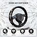 【Anti-Slip Safety Design】The surface of our steering wheel covers is designed with non-slip diamonds to increase friction with the palm of your hand, making it non-slip,ensure driving safety. Its inner ring is designed with tire texture and rivet inlays to fit the original car without damaging the original steering wheel.