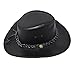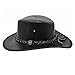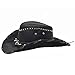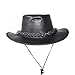 FEATURES - This Bullhide cowboy hat is made of black color genuine leather and features 3 inch brim; The eyelets at the side of the crown provide venting and a chin strap keeps the hat holding steady in the wind