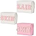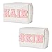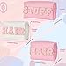💄Beautiful and Elegant Design: The preppy makeup bags adopt soft white and pink color, and has a big “HAIR” letter with gold trim is stuck in the middle letter in the center. It exudes an overall sophisticated and refined look.an overall sophisticated and refined look.
