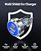 SAFE & RELIABLE - Certified RoHS, CE & FCC, Protects devices from overheated and over-currents, overcharging, and short circuits, Charging will be automatically stopped when the battery is full. ABS + PC fireproof material, confirm the connection by LED Indicator Blue Light, and you can make sure your digital devices are always charged.
