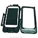 Book-style opening case with locking mechanism at the top and side plus additional seal clips. Touch screen access to phone. Power access (for Ultimate Addons charging cable included) & headphone access (headphones not included).