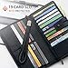 Efficient Travel Organizer: Designed to accommodate multiple passports (up to 4), tickets, cash, travel documents, 6 credit cards, an ID window, insurance cards, a pen, and even your phone, this travel document organizer offers ample storage space to keep everything organized and easily accessible. It's the perfect companion for solo trips or family vacations.