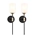 【Set of 2 Modern Wall Light】Crafted from sturdy metal , featuring matte black finish with white cylinder glass Lampshade, BYOLIIMA black wall sconce no need to worry about getting oxidation and color fading. Durable Quality and elegant, Perfect for mid-century decoration styles and combines the contemporary and vintage style.